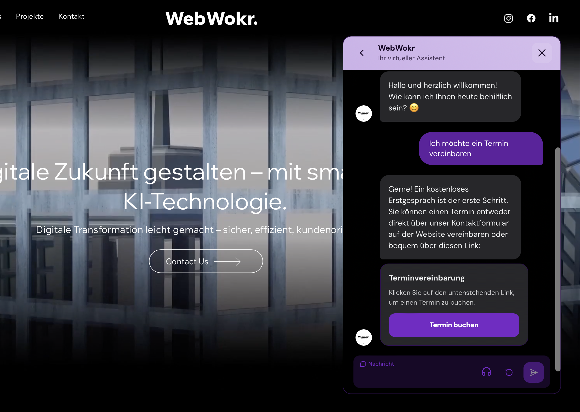 Gemeinsam entwickeln wir eine passgenaue Chatbot-Strategie und erstellen ein Angebot, das exakt auf Ihre Anforderungen abgestimmt ist – für maximale Effizienz und Wirkung.